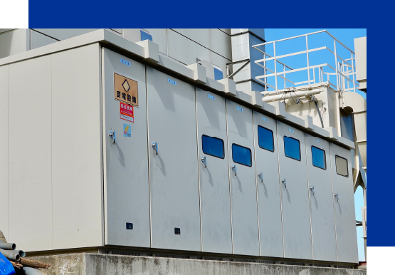 電力会社から供給されてくる6,600V高圧電力を低圧電力へ変電させ、施設などで使用できる状態にする設備です。施工不良があると大事故につながるため、確かな知識と技術で安全・確実な施工をお約束いたします。増設や更新工事なども対応可能ですので、お問い合わせください。